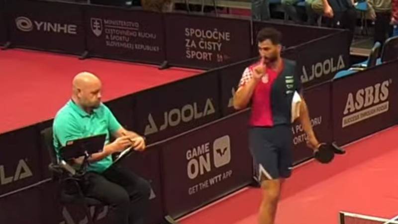 Hrvatski stolnotenisač smatrao je da je njemu pripadao poen i ušao je u raspravu sa sucima, a jednog od njih je pitao poznaje li osnove fizike. Završio je u raspravi i s protivnikom